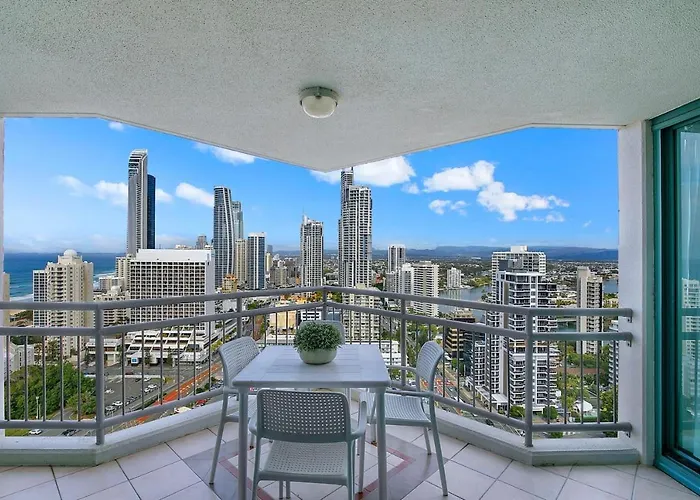 広々とした90m²のCity Energy And Poolside Serenity At Surfers ゴールドコーストアパートにはサンデッキがあり、ろう人形館から徒歩で5分の場所に位置しています。 寝室2室のアパートからサウスポート・ブロードウォーター・パークランド少し離れたで、マッキンタッシュ アイランド パークから1.5kmです。